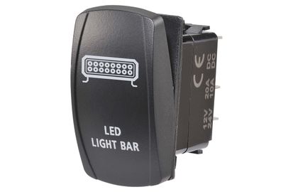 12/24V Off/On LED Illuminated Sealed Rocker Switch with "LED Light Bar" Symbol (Bl