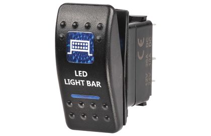 12 Volt Illuminated Off/On Sealed Rocker Switch with "LED Light Bar" Symbol (Blue)