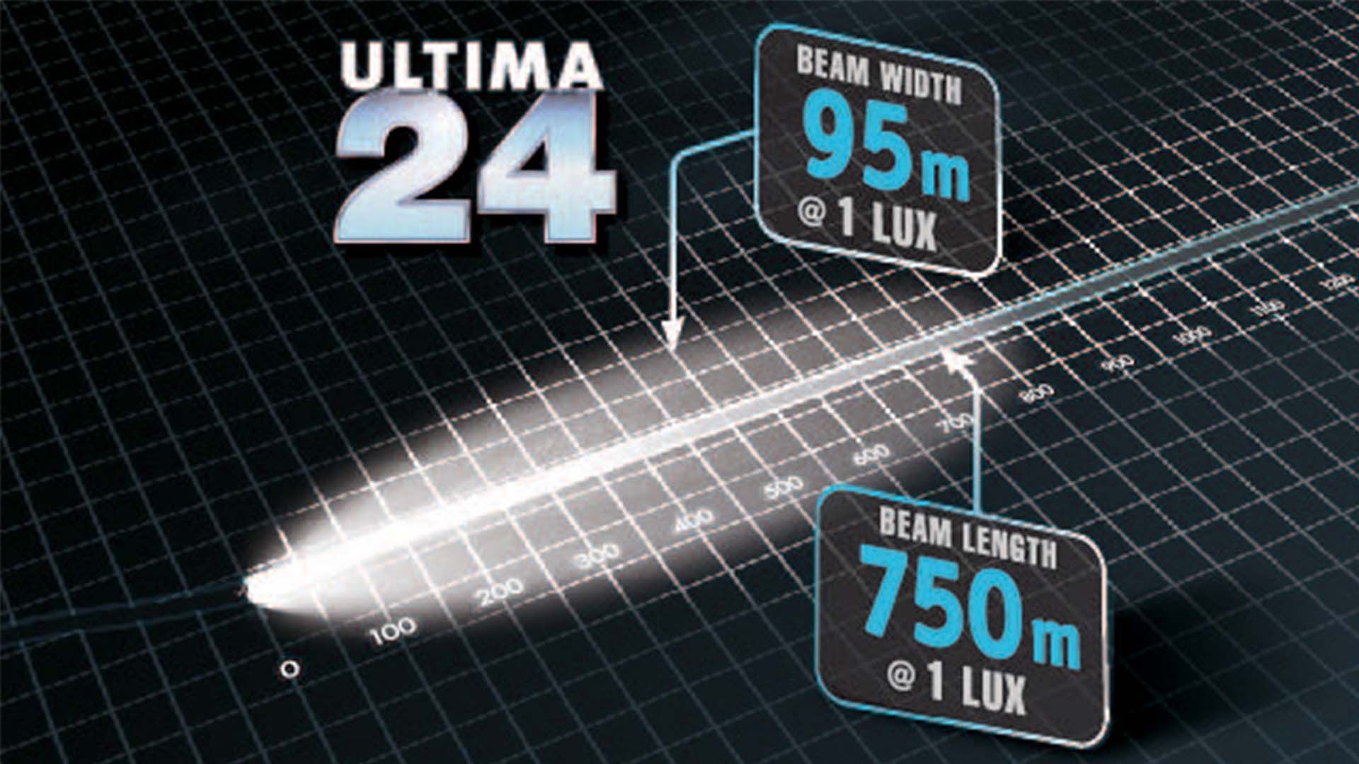 Available in both satin and stealth colours, the Ultima 24-inch light bar is lighting like you have never seen before! The combination of an Ultima Light Bar's precision optics, unique construction and high power LED's produce a truly market leading beam pattern. The signature performance of the 24-inch bar, is how far the beam width continues, producing an incredible 95M width at 500M. These light bars are available in two beam patterns (Long and Wide Hybrid Beam or Ultra Wide Flood Beam).