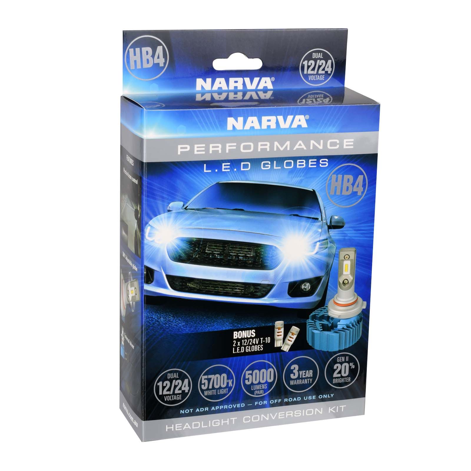 The Narva range of L.E.D performance headlamp globes brings the performance globe to the modern world. With a wide range of globe types ensuring most vehicles are covered, Narva L.E.D performance globes provide the best of both worlds increasing light output and colour whilst also being ultra-long life. In fact with over 50,000 hours life they will often last for the life of the vehicle, a true fit and forget option. They also reduce the current draw by 70-80%.