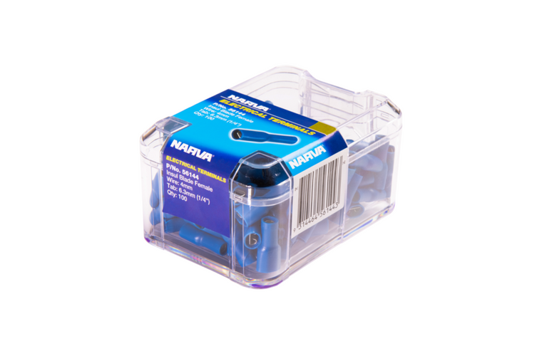 Female blade terminal, flared vinyl full insulated.