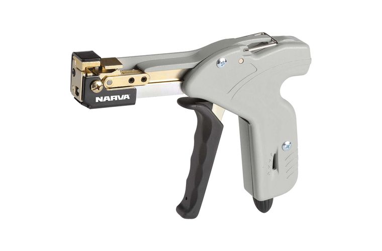 A premium quality stainless steel cable tie tensioning tool that incorporates cutting blades in the