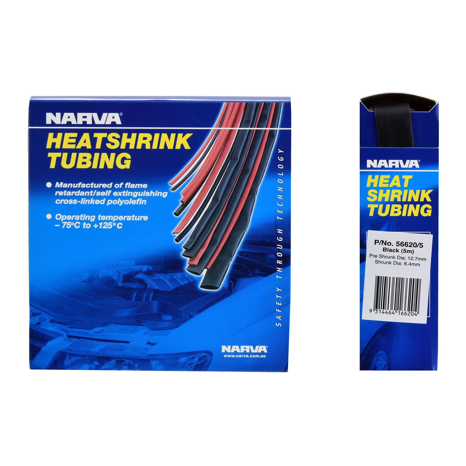 Narva heatshrink is manufactured using flame-retardant/self-extinguishing polyolefin
