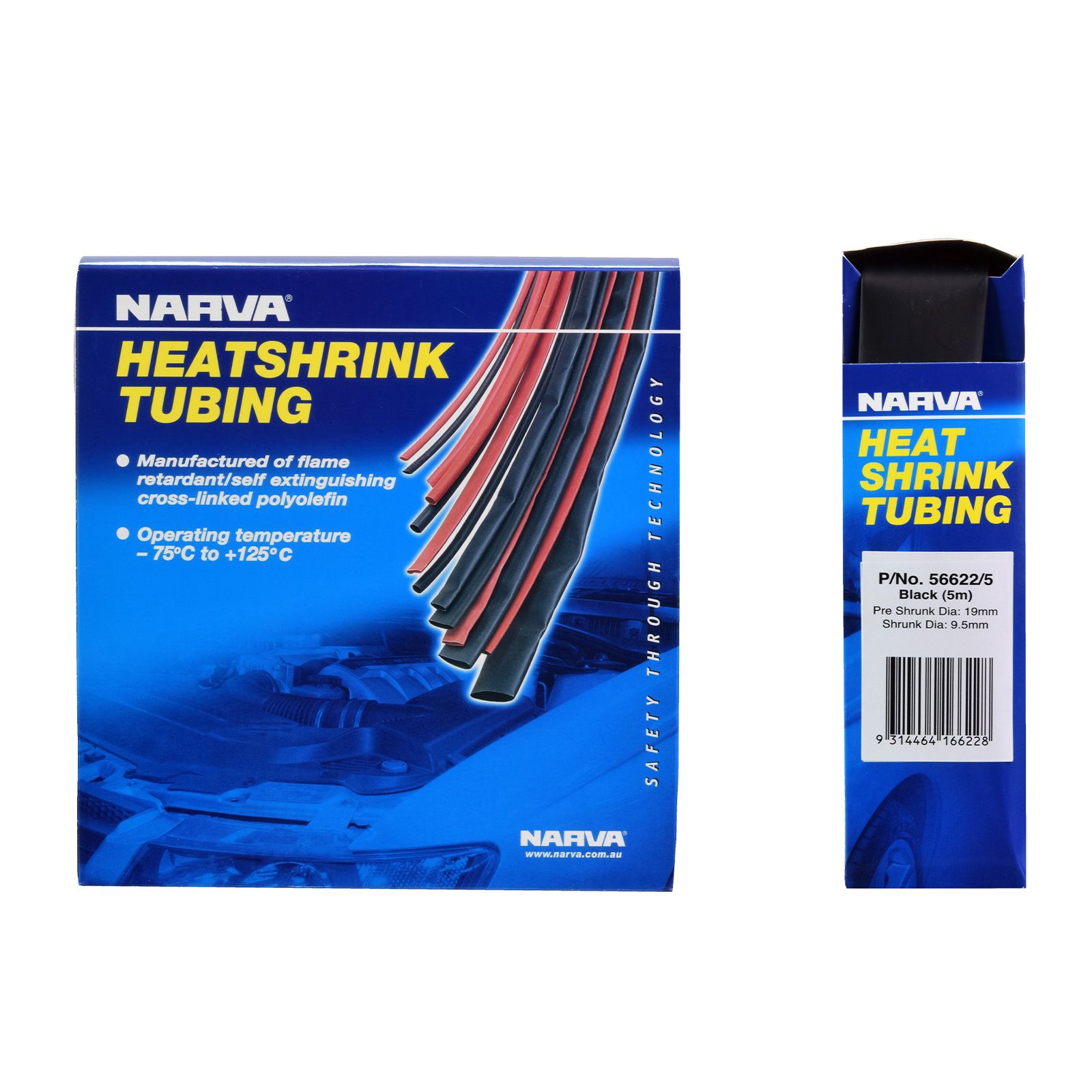 Narva heatshrink is manufactured using flame-retardant/self-extinguishing polyolefin