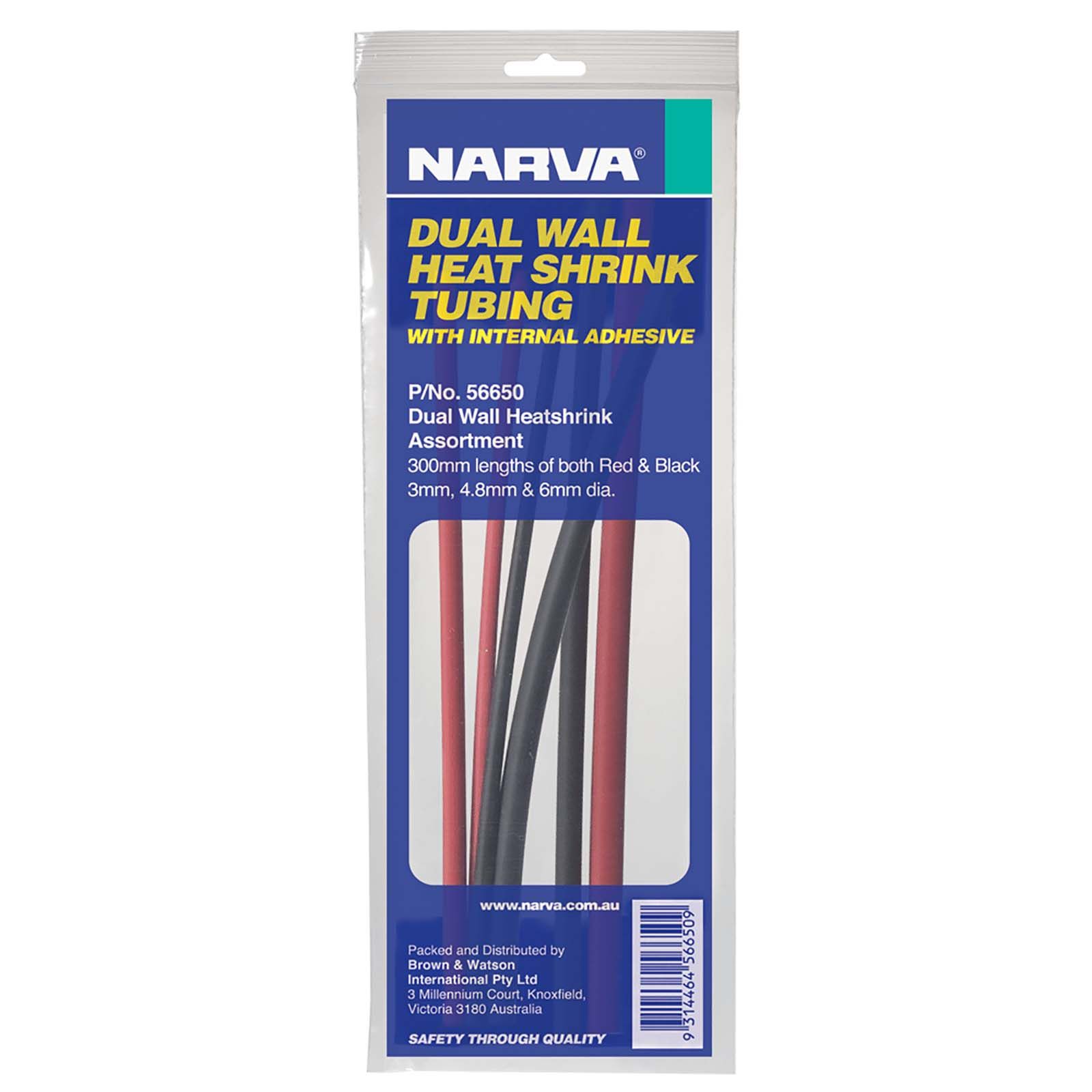 Narva heatshrink is manufactured using flame-retardant/self-extinguishing polyolefin
