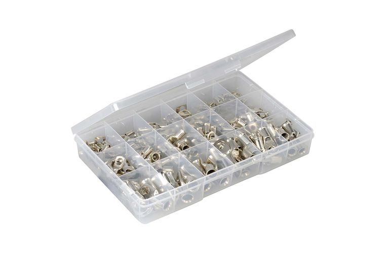 Contains 165 Narva cable lugs ranging from 10mm2 - 70mm2. Packed in a quality plastic