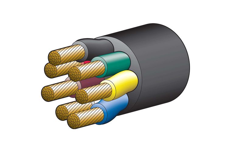 55A 6MM 7 CORE TRAILER CABLE (100M) Red, Green, Yelllow, White, Brown with Black sheath