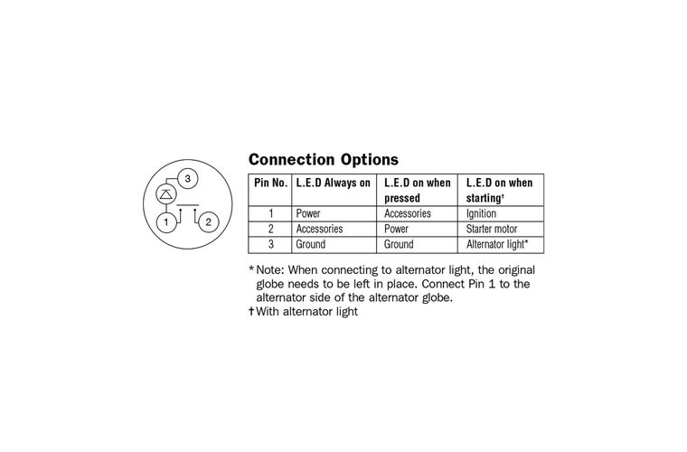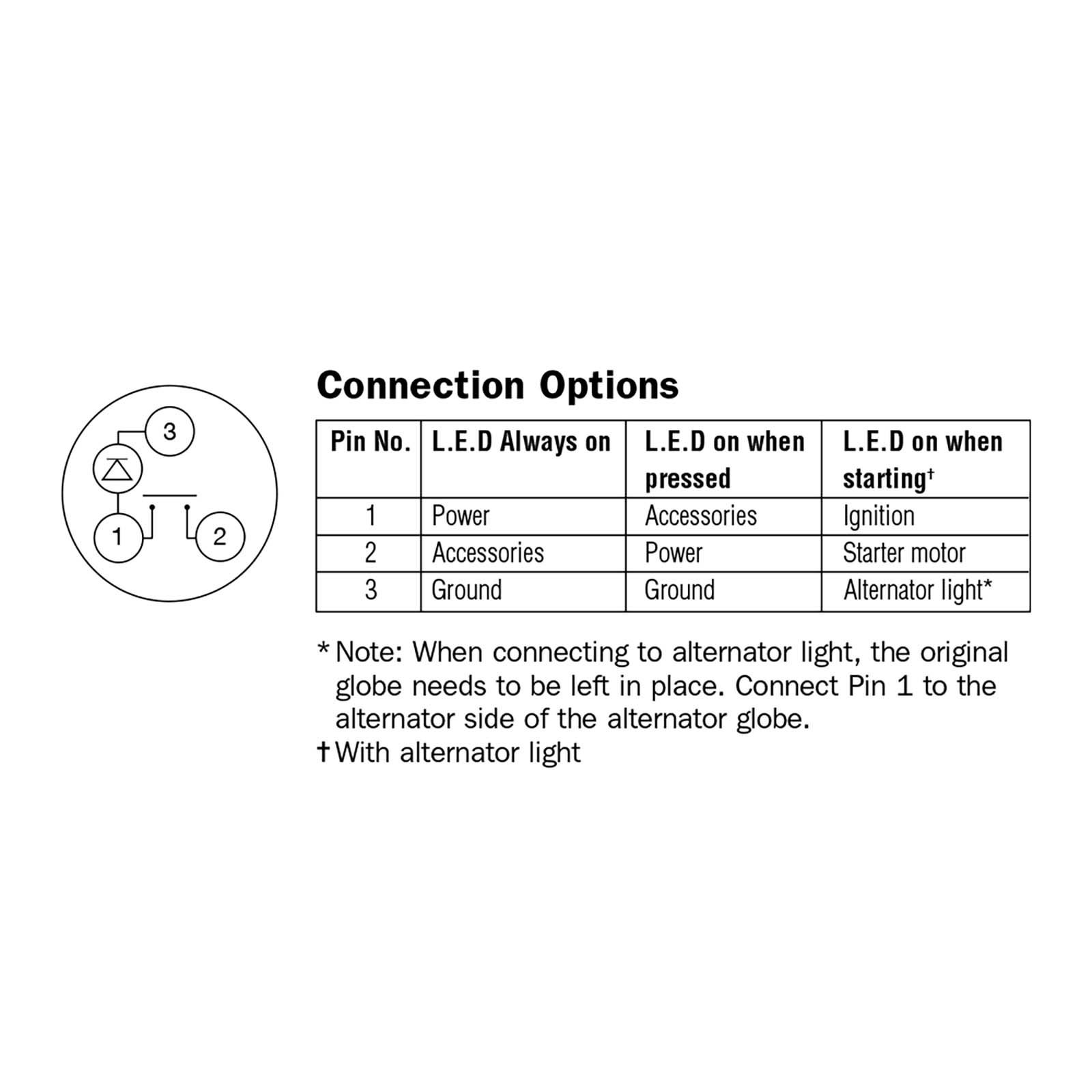 SPST, screw terminals Amperage rating 50A for use at 12V only Mounting opening 22mm dia.