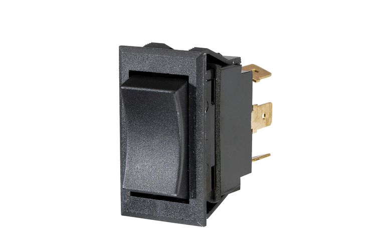 SPDT, push-fit design with push on terminals Amperage rating 20A at 12V, 10A