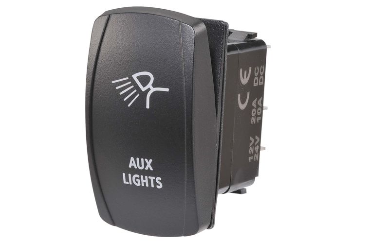 12/24V Off/On LED Illuminated Sealed Rocker Switch with "Aux Lights" Symbol (Blue)
