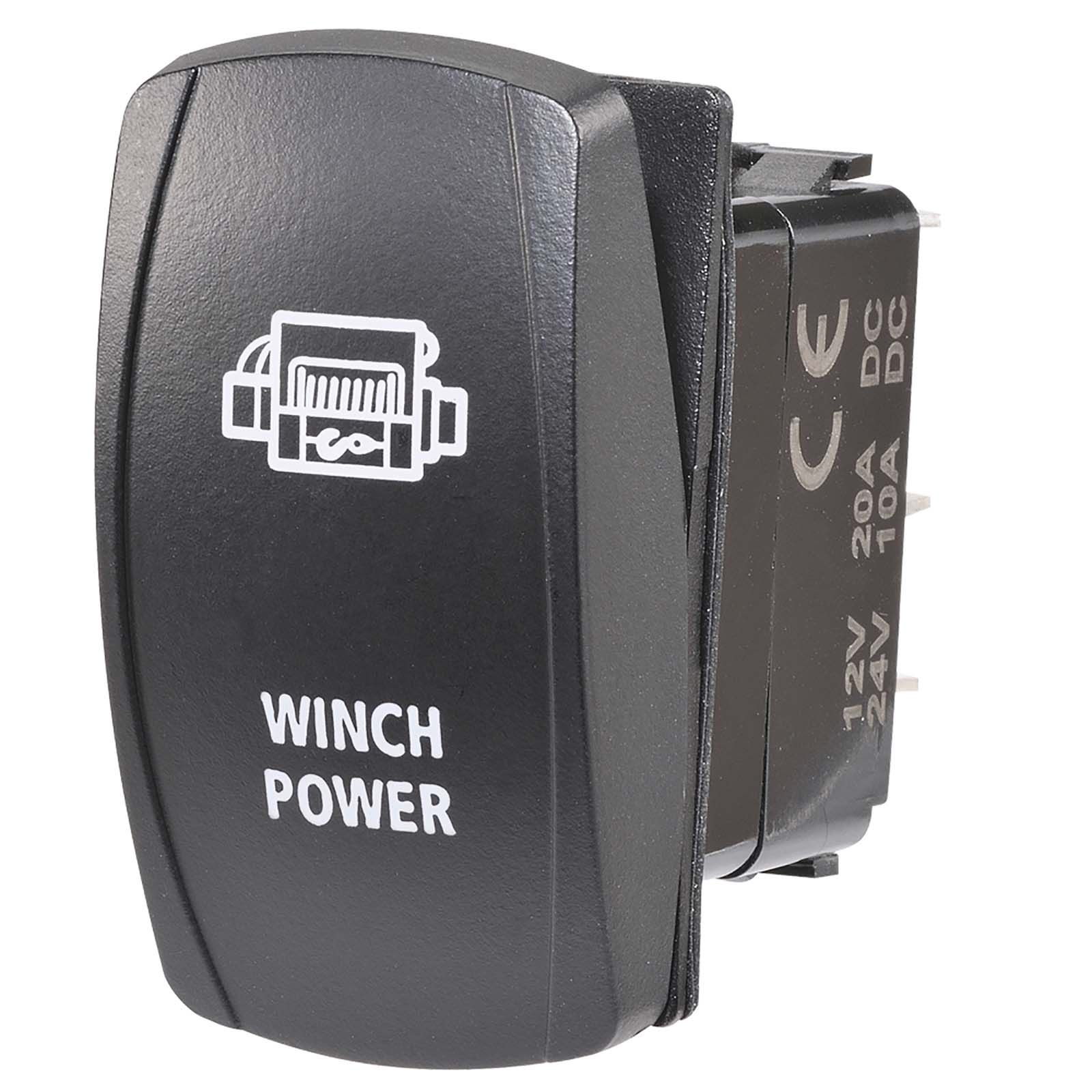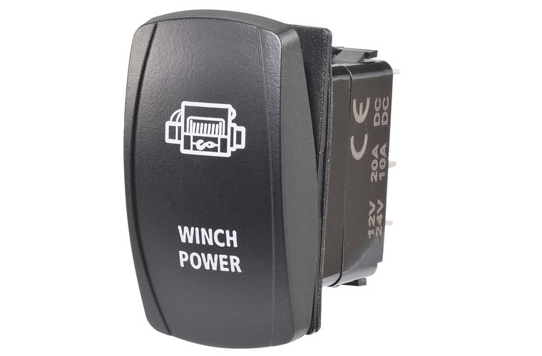 12/24V Off/On LED Illuminated Sealed Rocker Switch with "Winch Power" Symbol (Red)
