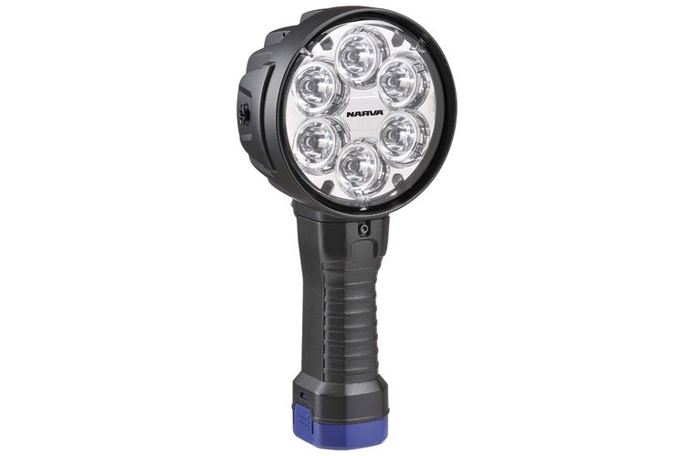 This heavy duty, rechargeable L.E.D handheld spotlight features 6 high powered L.E.Ds, providing a