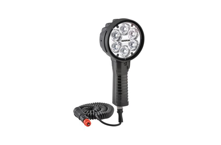 This heavy duty L.E.D handheld spotlight features 6 high powered L.E.Ds, providing a crisp spot beam