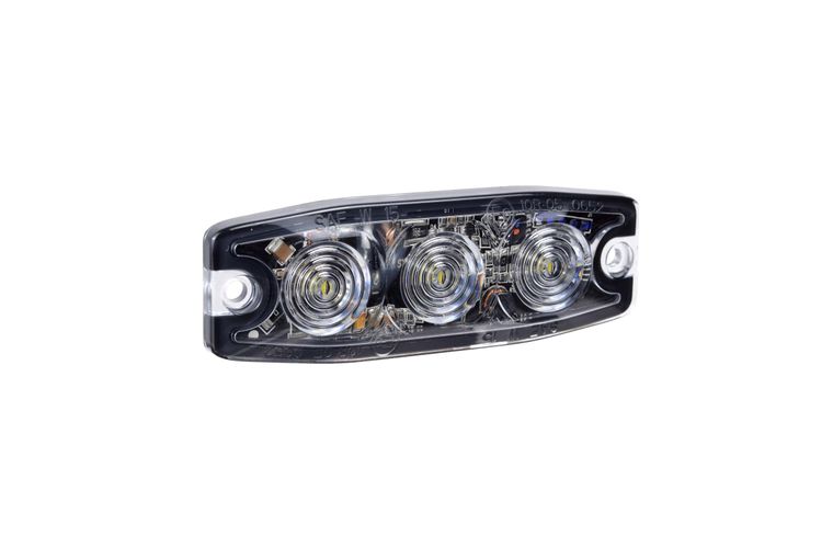 Features: Ultra low-profile slimline design utilising three high powered 1W L.E.Ds. 23 selectable flash patterns can be alternating or synchronised with multiple units and a nonvolatile memory retains last setting. Auto-dim function makes the lamps suitable for night operation. Supplied with 200mm,of pre-wired cables, 3M® tape or screws for fixing options.