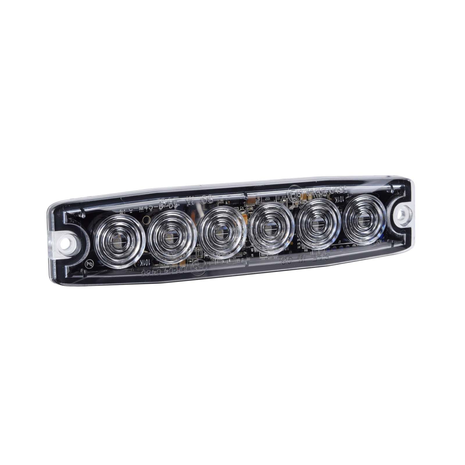 Features: Ultra low-profile slimline design utilising six high powered 1W L.E.Ds. 23 selectable flash patterns can be alternating or synchronised and a non-volatile memory retains last setting. Auto-dim function makes the lamps suitable for night operation. Supplied with 200mm of prewired cables,ƻM® tape or screws for fixing options