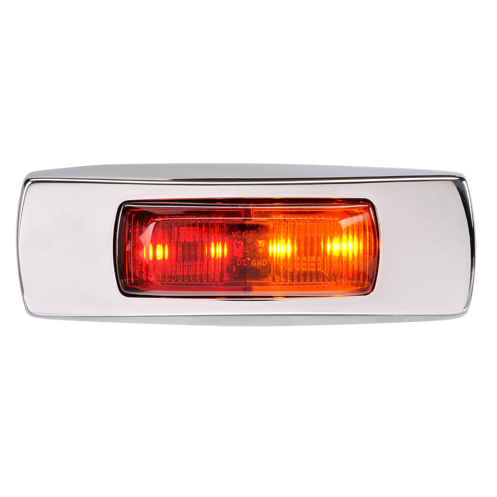 9–33V LED SIDE MARKER (RED/AMBER), CHROME COVER, 0.5M CABLE, DEUTSCH® CONNECTOR