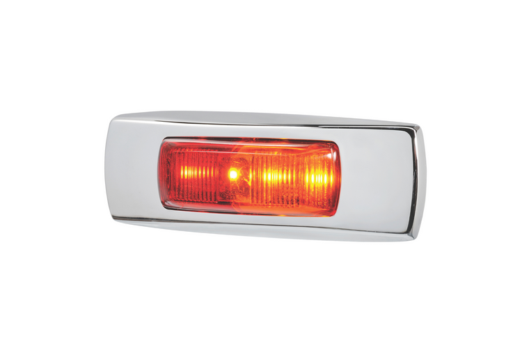 9–33 VOLT SURFACE MOUNT LED SIDE MARKER LAMP (RED/AMBER) WITH CHROME COVER AND 0.5MCABLE