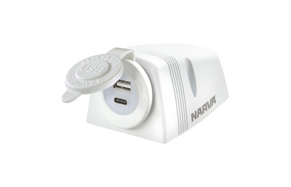 HEAVY-DUTY SURFACE MOUNT DUAL USB/USB-C SOCKET - WHITE RV AND MARINE APPLICATIONS