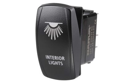 12/24V OFF/ON LED ILLUMINATED SEALED ROCKER SWITCH WITH "INTERIOR LIGHTS" SYMBOL (